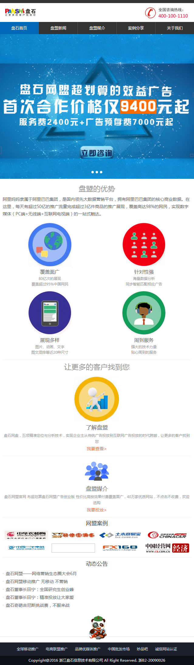 盘石网盟推广全面开创以行业网站为中心的新纪元,五项精准定位与分析技术,实现企业主从传统广告投放到互联网广告投放的时代跨越,让更多的客户找到您,获得最大的营销价值,成