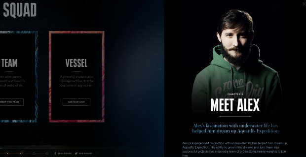 其实我们提过的很多特效都在该网站得到了体现,运用了大量的网页新技术,比如WebGL技术、序列帧动画……尤其在页面切换时的动效。