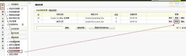 (1)织梦后台——核心——频道模型——自由列表管理——测试内容——更改,如下图: